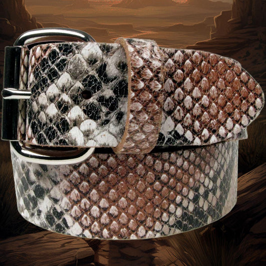 Brown Snakeskin Style Real Leather Snap On Belt 1.5 inch/38mm - With Buckle
